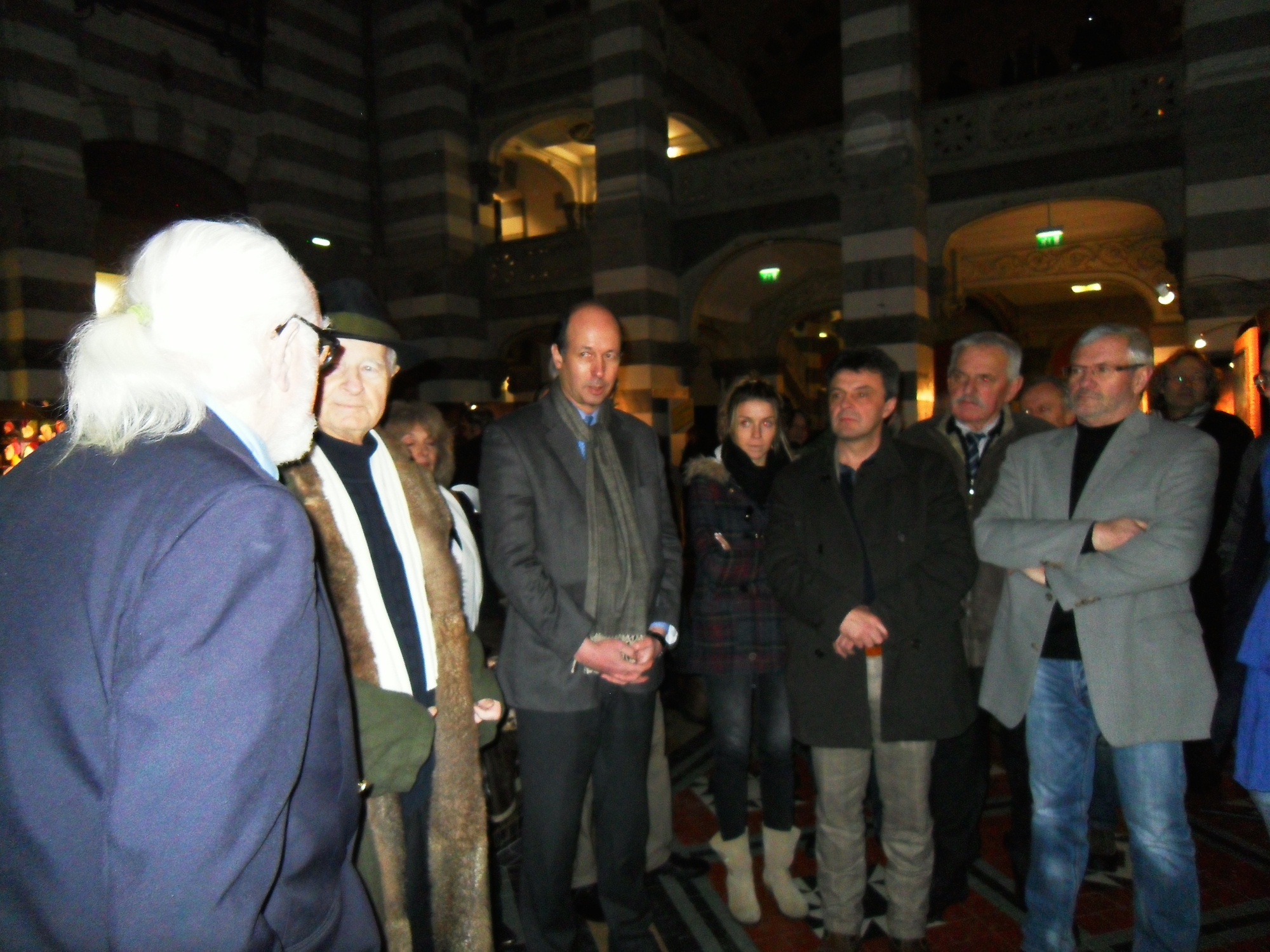 Verleihung der Silbermedaille. Von links: Roger Erasmy (Kurator), Martine Delaleuf (Präsidentin Grand Palais Paris), Louis Giscard d’Estaing (Député Region Puy de Dôme), Angerer der Ältere