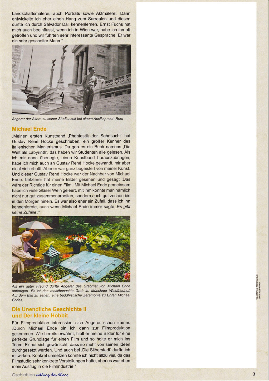 Im Regionalmagazin für den Raum Abensberg, Biburg und Rohr „Gschichten entlang der Abens“ wurde im Mai 2021 von Ellen Gallwas über den Künstler Angerer der Ältere berichtet. Dies soll eine Erinnerung sein.