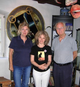 Foto aus dem Atelier von Angerer der Ältere, von links Margit Angerer, Martine Delaleuf, Angerer der Ältere, Foto Monsieur Delaleuf