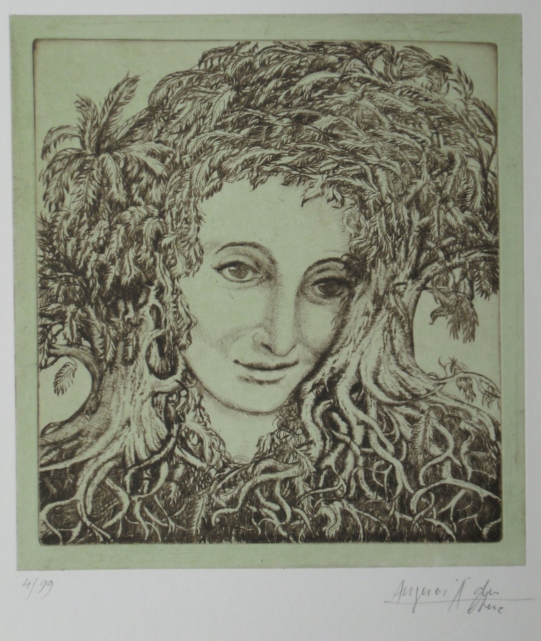 Die Welt als Labyrinth - Gustav Rene Hocke gewidmet - Radierung handcoloriert